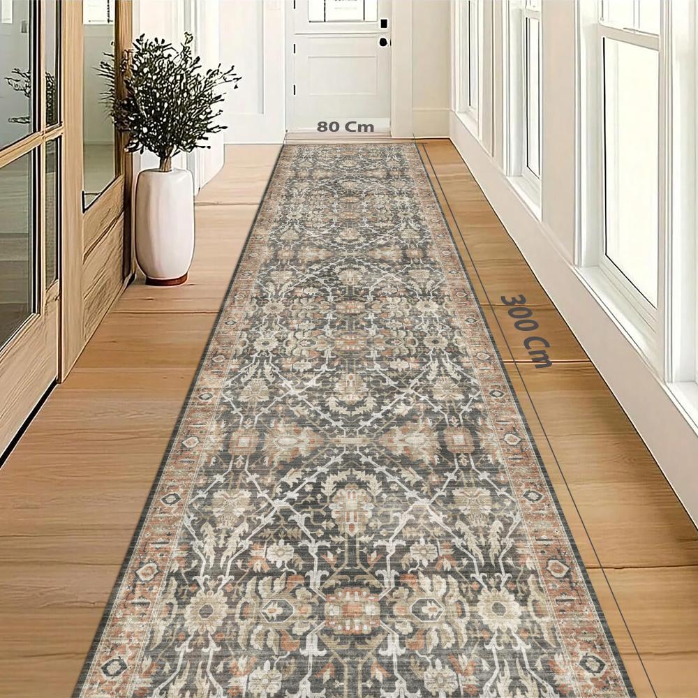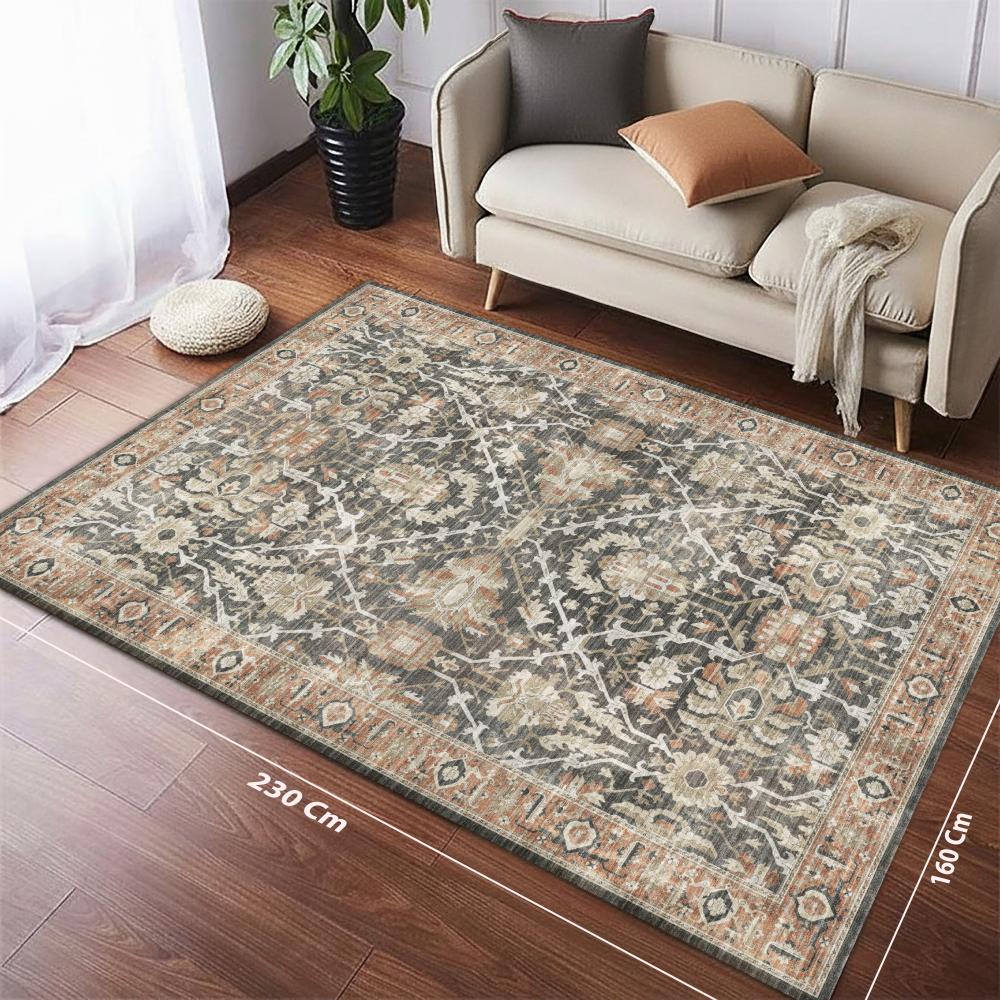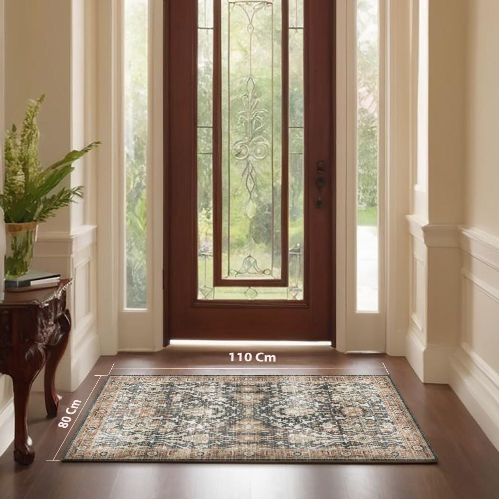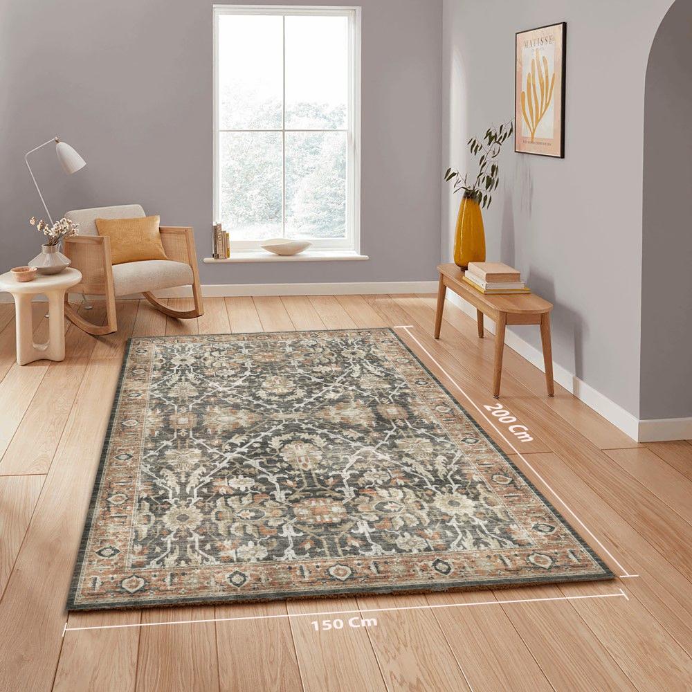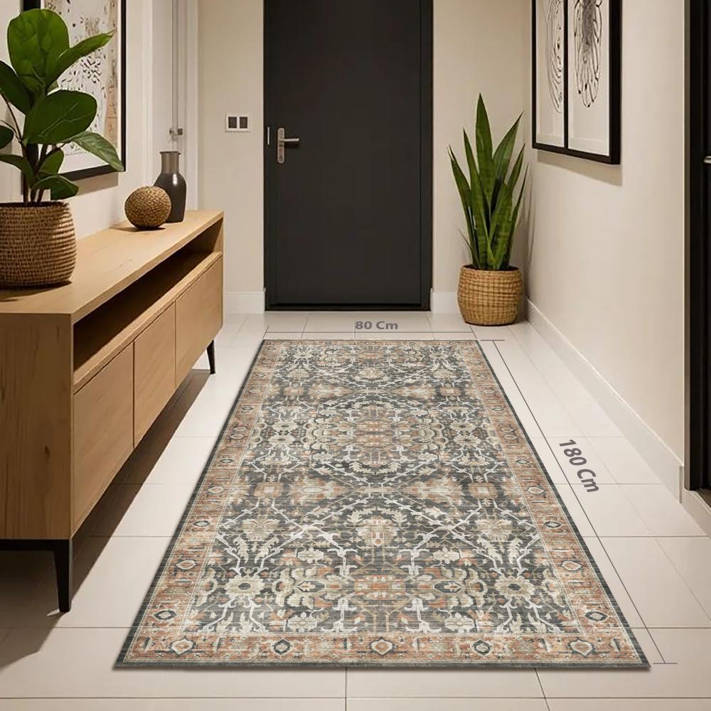 جمالية عتيقة داكنة وفخمة: مظهر باهت (مغسول) يمنح السجادة عمقاً وشخصية، وتظهر كنها قطعة فنية ورثتها عبر الأجيال.
