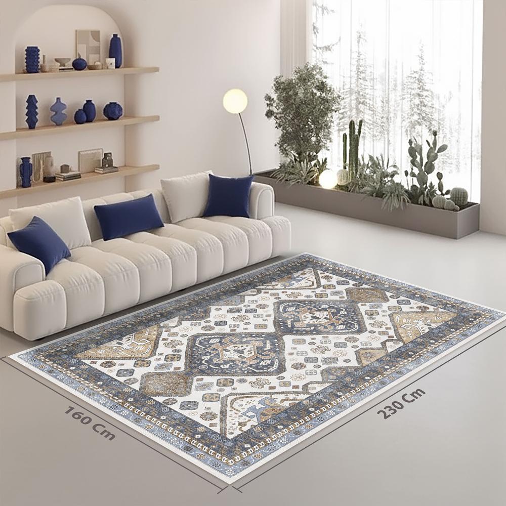 لوحة ألوان هادئة ومتوازنة: يغلب عليها العاجي الكريمي مع تباينات ناعمة من الأزرق الرمادي البارد ودرجات الجمّلي الترابي الدافئة، مما يسهل تنسيقها مع الأثاث الخشبي والمفروشات الفاتحة.