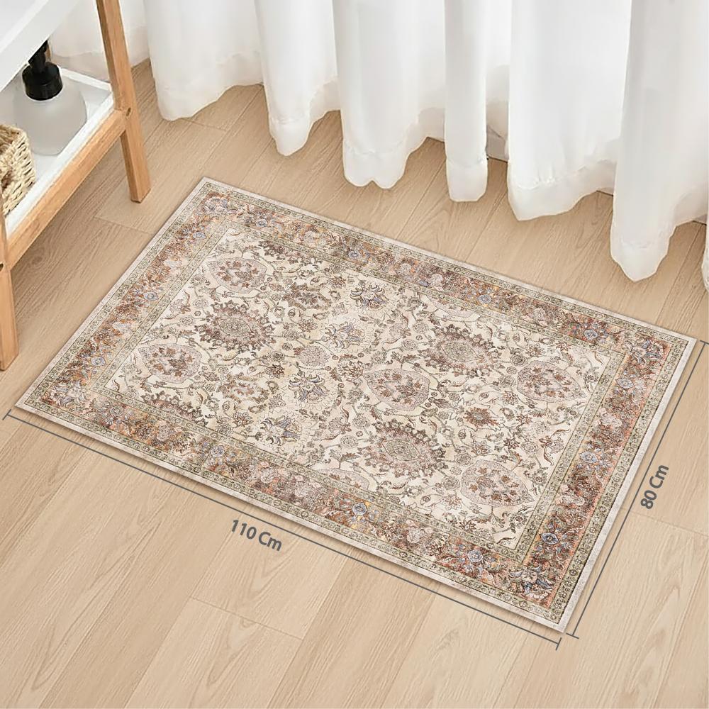 تصميم تقليدي خالد بجمالية عصرية: نقوش فارسية كلاسيكية أنيقة، معالجة بأسلوب عتيق ومغسول (Distressed Finish) يمنحها مظهراً عريقاً وهادئاً.