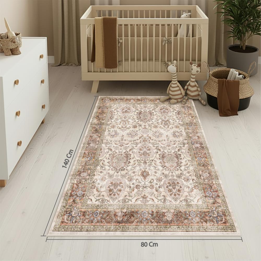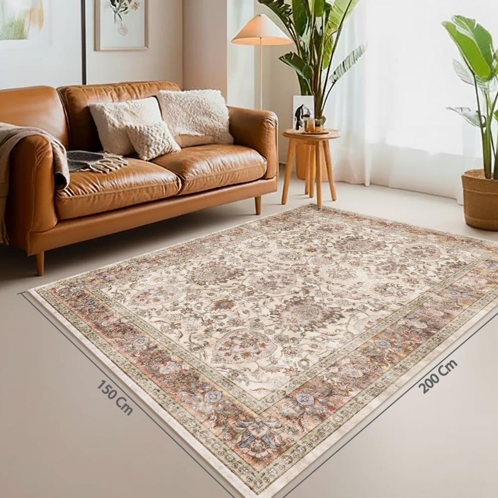 تفتيح الغرفة وزيادة اتساعها: الألوان الفاتحة لهذه السجادة تساعد على عكس الضوء، مما يجعل الغرفة تبدو أكثر إشراقاً واتساعاً.
