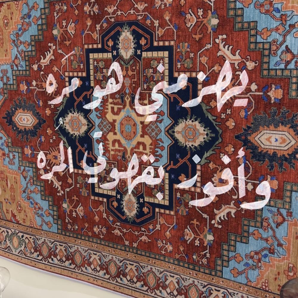 سجاد جدارية مقاس ٨٠*١٤٠سم بعبارة ( يهزمني هو مره وأفوز بقهوتي المره )