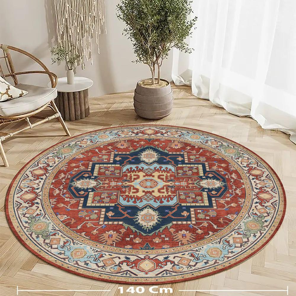 تصميم شرقي تراثي غني: نمط كلاسيكي يعتمد على ميدالية مركزية مزخرفة ونقوش هندسية وزهرية كثيفة، يضفي عمقاً وثراءً للديكور.