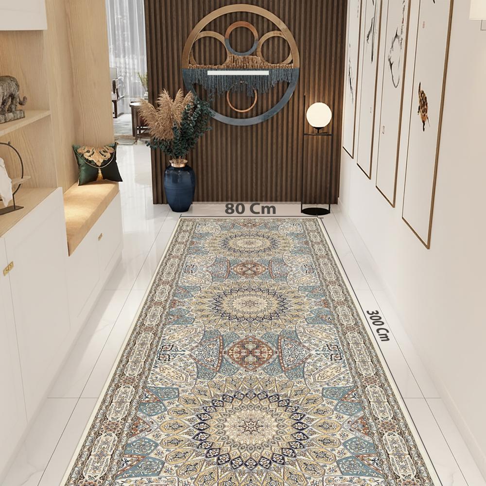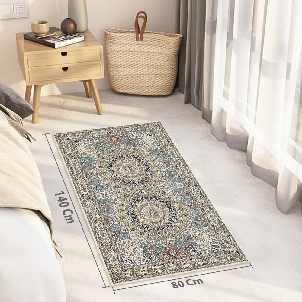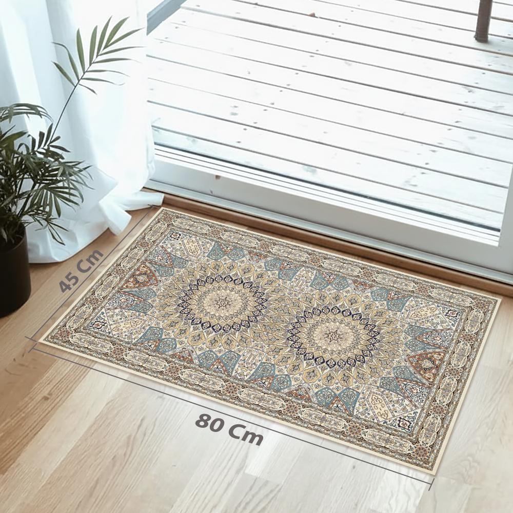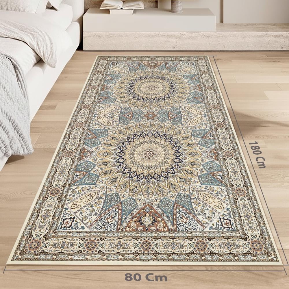 تصميم فارسي كلاسيكي راقٍ: نمط زهري ومنحني متقن، يتميز بميدالية مركزية نجمية الشكل تضفي لمسة ملكية وفخمة على غرفة المعيشة أو الصالون.