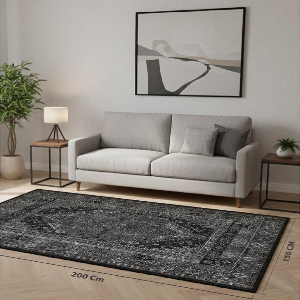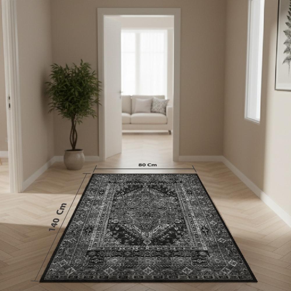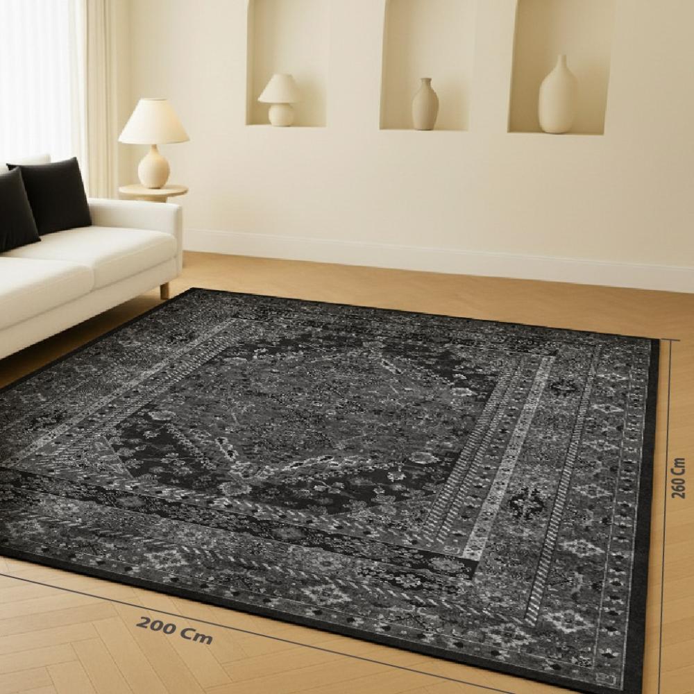 حوّل مساحتك إلى معرض فني عصري مع هذه السجادة التي تدمج بين الأنماط الشرقية العميقة والجمالية الدرامية للألوان الداكنة. تصميمها الرمادي الفحمي الجذاب هو الخيار الأمثل لمن يبحث عن الفخامة الراقية والهدوء العصري بعيداً عن صخب الألوان.