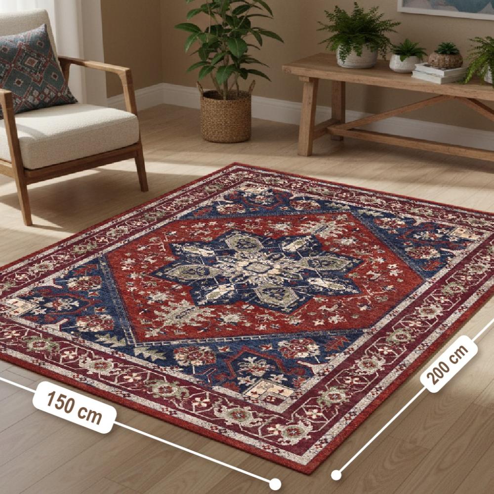 جمالية وتصميم عتيق فريد: نمط شرقي تقليدي بلمسة عصرية عتيقة (Vintage Distressed)، يضيف عمقًا وشخصية فورية لديكور غرفة المعيشة أو غرفة الطعام.
