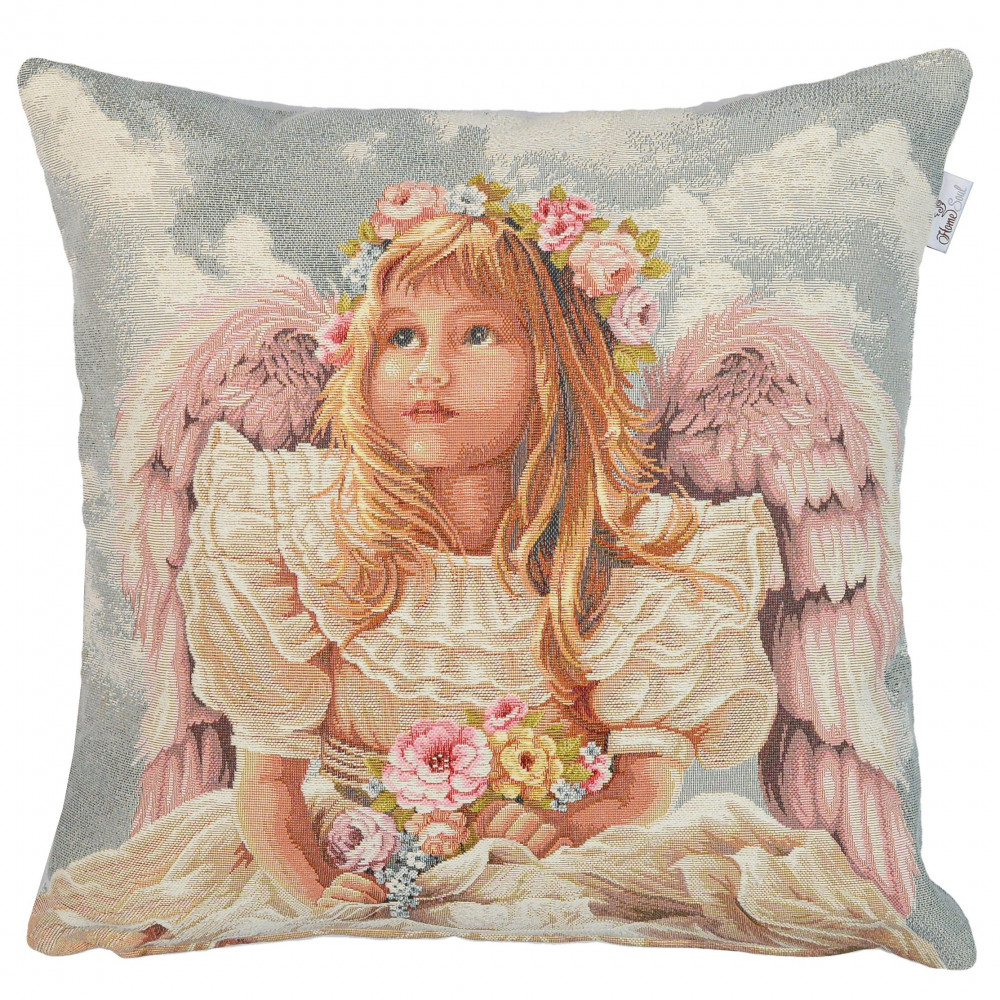 غطاء مخدة انتيك على شكل طفلة بجناحين نقشة PRIN