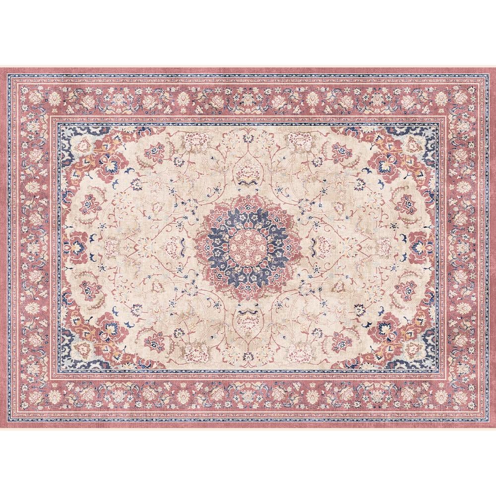 سجادة تراثية عتيقة (Vintage Distressed) | بتصميم شرقي تركي | ألوان أحمر داكن وأزرق بحري (Teal) | لغرفة المعيشة وغرفة الطعام