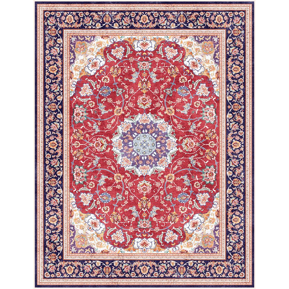 سجادة تراثية عتيقة (Vintage Distressed) | بتصميم شرقي تركي | ألوان أحمر داكن وأزرق بحري (Teal) | لغرفة المعيشة وغرفة الطعام