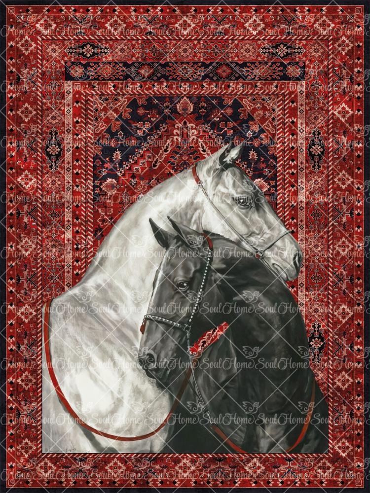 Luxury rug with traditional oriental design - burgundy and navy with beige details - elegant Persian style for living rooms and majlis - non-slip and easy to clean