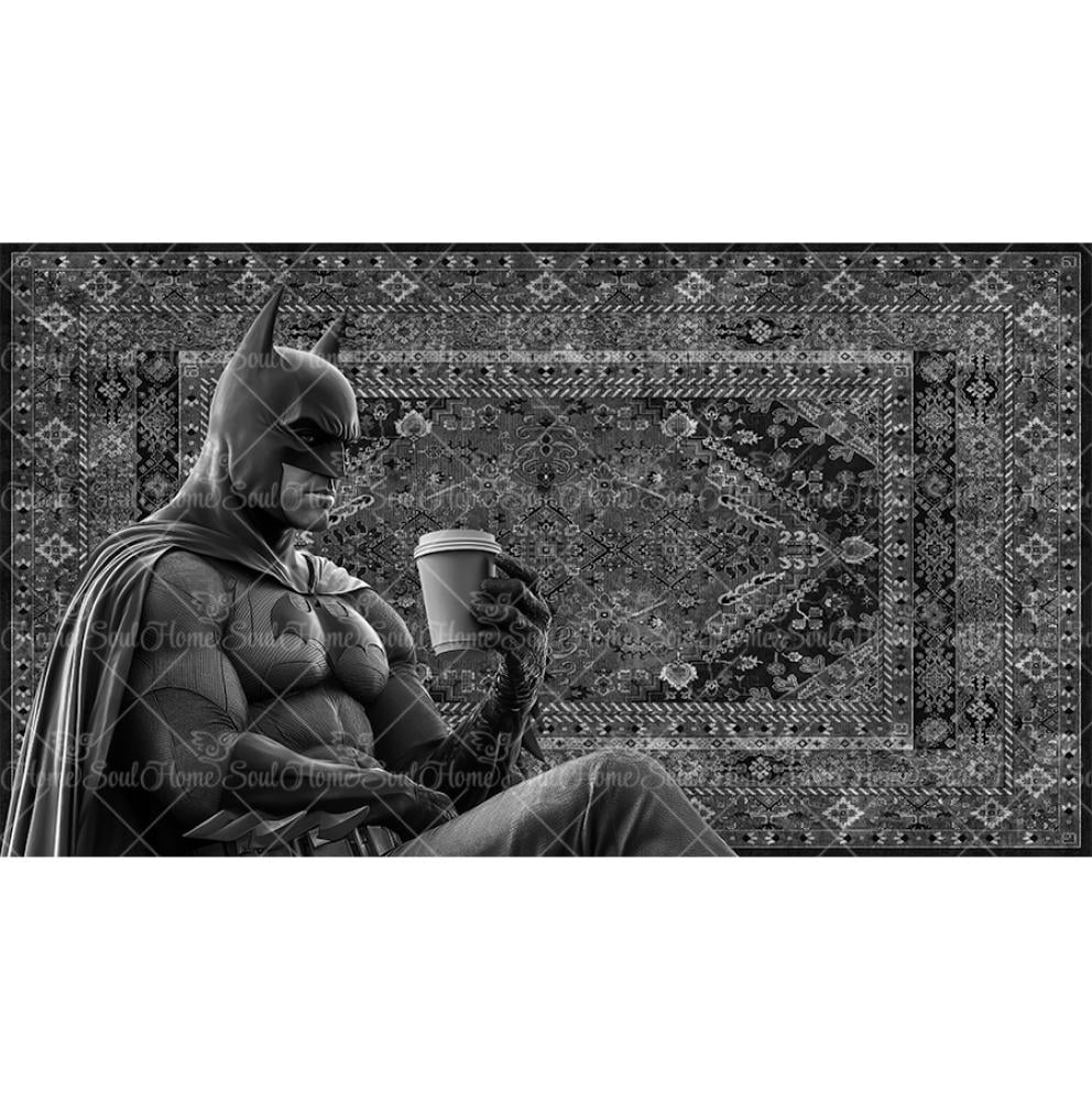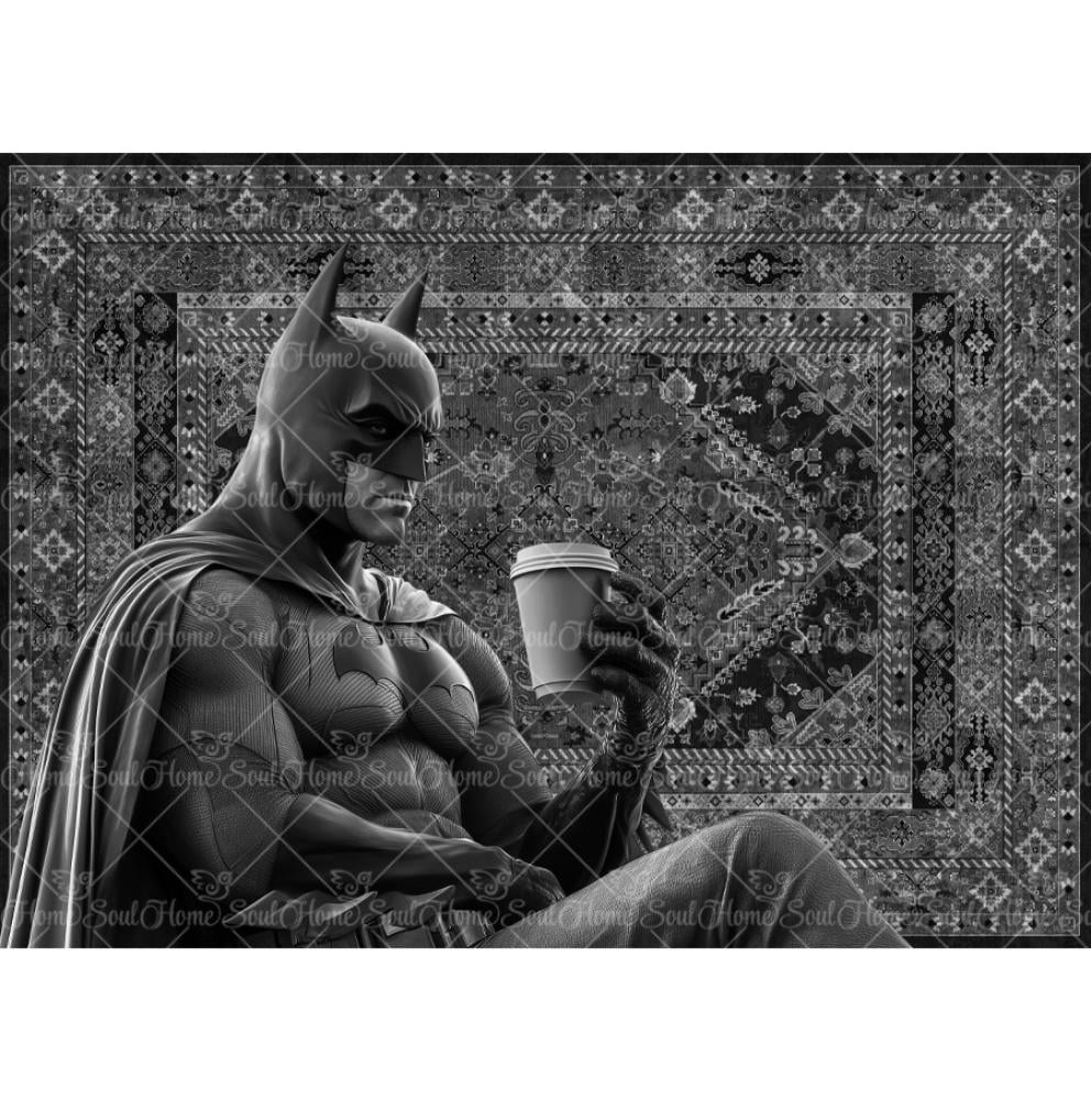 Batman drinking coffee rug with a phrase of your choice
