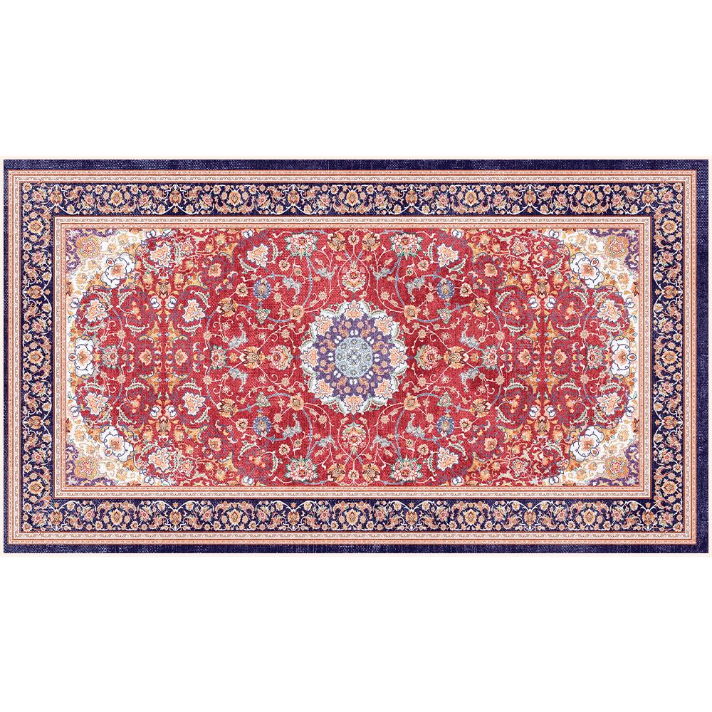 Luxury rug with traditional oriental design - burgundy and navy with beige details - elegant Persian style for living rooms and majlis - non-slip and easy to clean