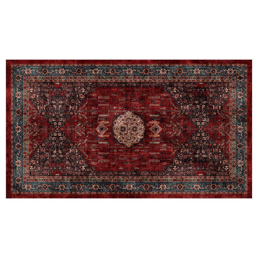 Luxury rug with traditional oriental design - burgundy and navy with beige details - elegant Persian style for living rooms and majlis - non-slip and easy to clean