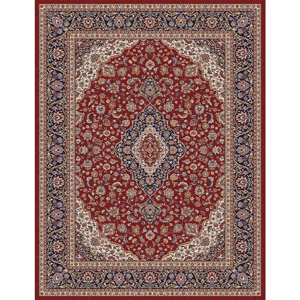 Classic Oriental Pattern Rug - Dark Navy with Red Ornate Border - Elegant Iranian Design for Living Rooms - 200 x 260 cm